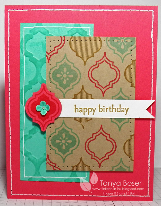 Time for more Mosaic Madness, and more strawberries the only way I can! I am not usually as pleased with the preview stuff as I am this year. I can see me using this set a lot! It does help that geometric patterns are big right now, and that there is a matching embossing folder and punch :)